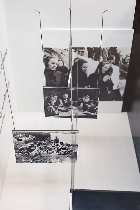 Das Wesen des Films Comizi d'amore, der in der Ausstellung nicht gezeigt wird, ist jedoch in den verschiedenen Kunstwerken präsent, die sich kritisch mit dem gemeinschaftlichen Leben und der politischen Dimension der Liebe auseinandersetzen. Zu bestimmten Zeitpunkten wird die Präsenz des Films deutlicher sichtbar als zu anderen. Nehmen wir zum Beispiel den Film Ricerche: three (2013) von Sharon Hayes, in dem sie Pasolinis charakteristische ungeskripte Interviewmethodik verwendet. Durch die Arbeit Insecurity (2023) von Marina Xenofontos, die eigens für diese Ausstellung konzipiert wurde, wird das Konzept der "Love Meetings" greifbar, wie es durch die englische Übersetzung des Filmtitels nahegelegt wird. Xenofontos setzt eine Reihe von Werken fort, die von Tischen inspiriert sind, die gewöhnlich in den Gärten und auf Balkonen Zyperns zu finden sind. Sie symbolisieren die Räume der Gemeinschaft, in denen Familien und Freunde zusammenkommen. Die Tischplatten zeigen Bilder aus dem persönlichen Archiv der Künstlerin, die sowohl die intimen familiären Momente als auch die öffentlich Landschaft Zyperns dokumentieren. Die Vereinigung dieser beiden fotografischen Genres erfasst die Essenz des Lebens auf der Insel.