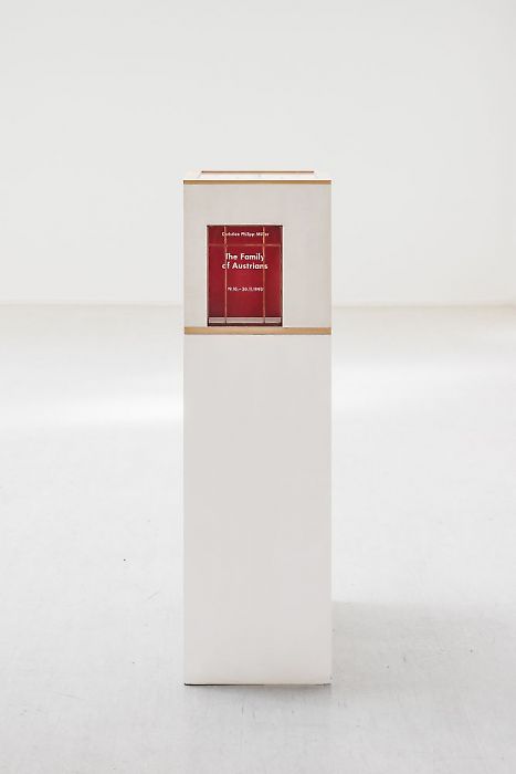 O.T. Family of Austrians, (Ronzoni Room), (1993) von Christian Philipp Müller ist ein Modell im Maßstab 1:10, dass einen der Räume aus der Ausstellung The Family of Austrians in der Galerie Metropol zeigt. Die Ausstellung, die sich von Edward Steichens The Family of Man und Adolf Loos‘ Essay Wäsche (1889) inspirieren ließ, untersuchte Themen wie nationale Identität, kulturelle Repräsentation und die Rolle der Fotografie bei der Gestaltung kollektiver Erzählungen anhand kuratierter österreichischer Kostüme, Lehrfilme, und Darstellungen von ÖsterreicherInnen. Die Installation regte die Betrachter:innen dazu an, Repräsentation, Authentizität und kulturelle Narrative innerhalb und außerhalb Österreichs kritisch zu hinterfragen.