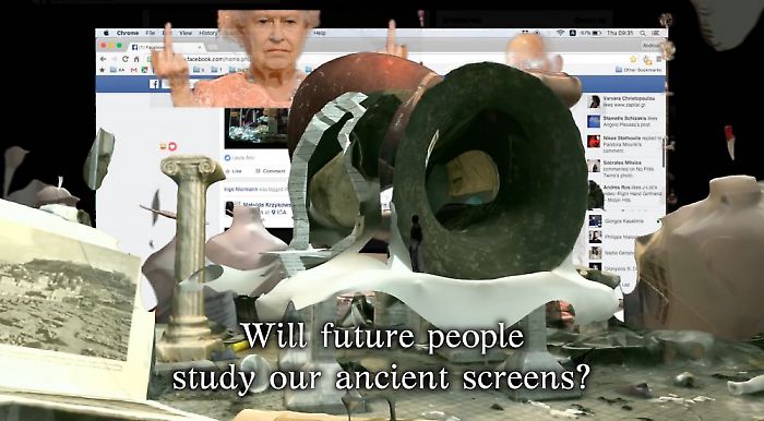 Social Media War Room (SMWR) may be described as a particular area that is specially designed to extract insights by visually monitoring certain real-time actions. Thus, it consists largely of multiple screens displaying data from an arsenal of sources. Accordingly, the exhibition is built around diverse works that are connected to monitoring (semi)public acts, mining reality, researching social networks in Ancient Greece, behavioral surplus, data exhaust, political demonstrations, leaked material, media spectacles, various online collections, public voyeurism, amongst others. SMWR may be compared to the News Room or War Room – they all are rooms for monitoring and controlling the ongoing situation.
