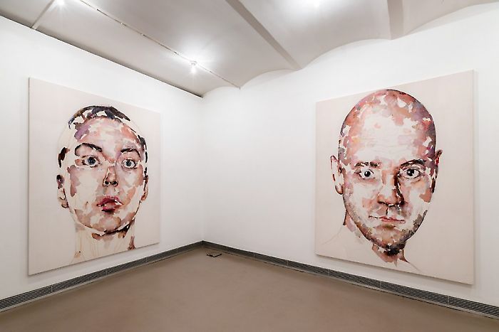 Seit einem Jahrzehnt setzt sich Gabi Trinkaus in ihrer künstlerischen Praxis mit Collage auseinander. Sie zerschneidet sowohl Hochglanzmagazine als auch billige Werbeprospekte in kleine Teile und gestaltet daraus Portraits und Stadtlandschaften, die Bezug nehmen auf die Ästhetik der Werbung und Medien. Gebräuchliche Posen, Schönheitsideale und Warenangebote werden aufgegriffen und in den großflächigen Arbeiten gesampelt. In diesen Make-Overs von Gesichtern und Körpern erzeugt Trinkaus eine oberflächlich perfekte Form und lockt den Betrachter in eine visuelle Falle, indem bewusst die Medien- und Werbeikonographie als Köder für den ersten Blick aufgegriffen wird. Durch die Anlehnung an die in der Werbewelt verbindlichen Ästhetiken, anonyme Gesichter und gängigen Posen spielt Trinkaus in ihren Arbeiten mit der Idee der Verführung. Zugleich evozieren ihre Collagen ein Gefühl des Verlusts und des Scheiterns der Wahrnehmung von einer heterogenen, in ihrer Komplexität nicht mehr vollständig zu erfassenden Welt. Wie abblätterndes Make-up scheinen sich die Gesichter und Körper aufzulösen und enttarnen die Maskenhaftigkeit und Künstlichkeit von Identitätskonstruktionen und täglichen Lebensperformances.