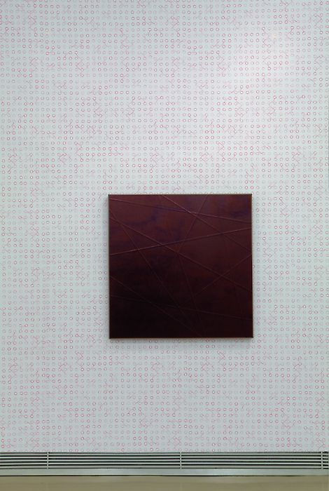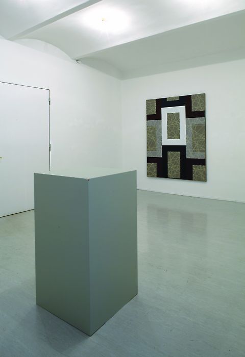 Wenn die Künstler sich dazu entschließen, ein schwarzes, maschinell gefertigtes Metallgitter von Andreas Fogarasi unkommentiert in ihre Ausstellung mit einzubeziehen, das wie die skulpturale Übersetzung eines Netzwerkbildes Hintereggers gelesen werden kann, machen sie zudem deutlich, dass auch das Konzept von künstlerischer Autonomie und Originalität längst dem einer ideellen Konstruktion von Versatzstücken frei von Hierarchien und Ursprüngen gewichen ist. Dass künstlerische Produktion nie alleine auf individuelle Imagination beruht und sich in der heutigen Cut and Paste Kultur mehr denn je auf die Methoden der Aneignung, des Zitierens und (Re) kontextualiserens bezieht, kommentieren Hinteregger/Dedobbeleer eindrucksvoll im Oberlichtsaal der Galerie. Lapidar bezeichnet Hinteregger seine Aktion des Herausnehmens der gesamten Deckengläser zur Hervorhebung des Rasters und der Gitternetzstrukturen, die sich wie ein roter Faden durch die gesamte Ausstellung zu ziehen scheinen, mit "Untitled (Man braucht nur das Getane Fortzusetzen)". Ein Zitat aus den Schriften von Ad Reinhardt, wurde als Aufforderung verstanden, die bereits von einigen Künstlern angedeutete Idee, die Glasdecke in den Ausstellungskontext einzubauen, bis in die letzte Konsequenz durchzuziehen. Imposant öffnet sich der Raum nun nach oben und macht die sonst verborgenen architektonischen Gegebenheiten und Feinheiten der Fabrikationshalle einer ehemaligen Druckerei sichtbar, in der es scheint als habe sich der Geist der über 100jährigen Geschichte seltsam eingeschrieben. Koenraad Dedobeeleers Objekte, wie die auf verschiedenen Höhen hängenden Metalllampen und bunten Keramikkugeln oder die behausungsartige, konstruktivistische Bodenskulptur wirken in diesem historischen Ambiente wie fremdartige Eindringlinge aus einer unbestimmten Zeit, die in Kombination mit Herbert Hintereggers exakten, fein schillernden Leinwandarbeiten dem „sense of disquietude concerning the existing order of things“ neue Bedeutung verleihen.