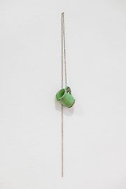 Marianne Muellers skulpturale Arbeiten treten mit diesen visuellen Verdichtungen in einen Dialog und geben ihm eine räumliche Resonanz. Über ihre Volumina erzeugen sie eine abstraktere, aber nicht weniger evokative Repräsentation von Materie und arretieren das Flüchtige trotz ihrer soliden Präsenz im Raum. »Phantom« nennt sich eine Skulpturengruppe aus amorphen Keramiken, glänzend lasiert, deren Sockel aus den Gestellen von Sesseln, Hockern oder aus Transportrollern jene Drehscheiben waren, auf denen die Werke entstanden sind. In lockerer Formation über den Raum verteilt, wirken sie wie Gespenster und Geister, Verkörperungen von Erscheinungen, wesenhaft präsent und doch wie Spuren einer Erinnerung. Marianne Mueller lässt sich von der Natur des Materials, das sie bearbeitet, leiten, lässt dem Zufälligen des Herstellungsprozesses Raum und schafft Formen, die selbst Spur sind, zeithafte Manifestation und im Werden erstarrte Figuration. Sie wirken organisch in ihrer schimmernden Glasur oder trotz ihrer Fremdheit vertraut wie die plastische Gischt des in eisigem Wasser erkalteten Bienenwachses des »Cosmic Drift« oder der »Cosmic Wave«. Sie wuchern als Pilz , erinnern an Lautsprecher oder Sensoren und betten sich ein in den Raum, der zu ihrem temporären Habitat wird.