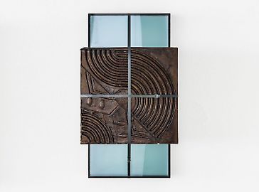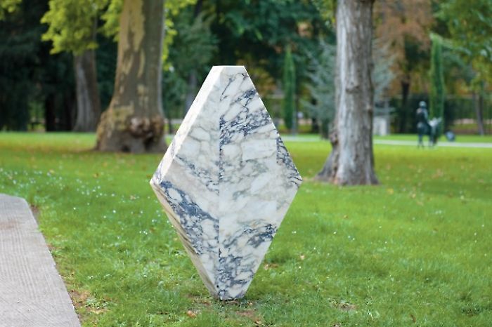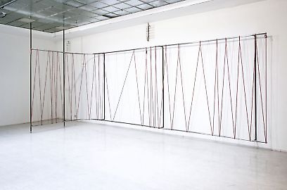 6 marble structures with photos, ca. 148,5 x 110 x 36 cm each, 7 photos on the wall, ca. 30 x 45 cm each