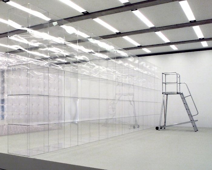 2002, Acrylglas (transparent/farblos) 10 mm, 6 Industrieschrauben, 6 Industriemuttern, 110 x 156 x 8 cm