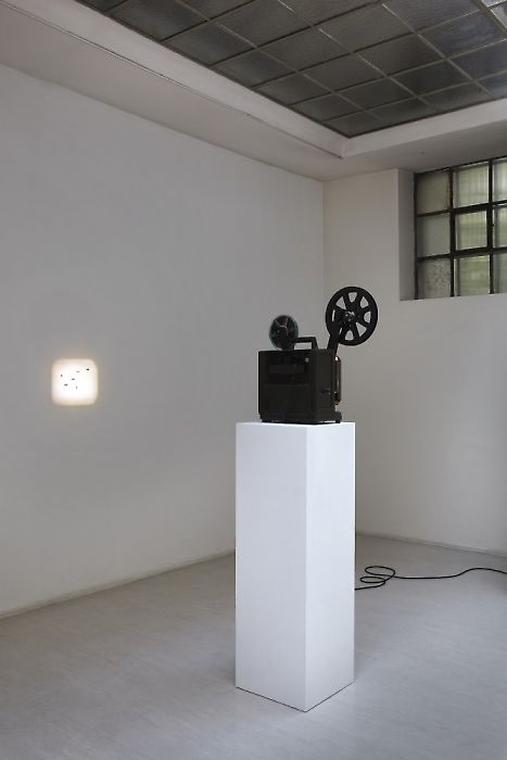 projector, 6 paintings in oil on canvas, each 1,1 x 1,1 cm