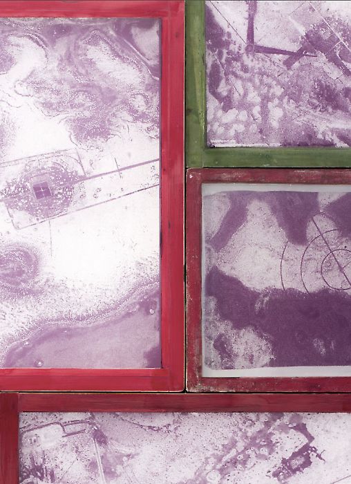 Darüber schweben fünf Siebdrucksiebe mit Motiven von Zieleinrichtungen der US Army in den Sperrgebieten UTTR, die sich in örtlicher Nähe zum Salzsee in Utah befinden. In einer eleganten Vitrine werden zudem drei Life Magazine aus den Jahren zwischen 1945 und 1952 präsentiert, die eindrucksvoll belegen, in wieweit die zunächst geheimen Atombombenversuche Eingang in die amerikanische Populärkultur gefunden haben, um damit die militärische Stärke und Überlegenheit der amerikanischen Supermacht in der Zeit des Kalten Krieges massenmedial zu verbreiten. Die Wüste wurde gleichsam als Atomlabor stilisiert. Die amerikanischen Land Art Künstler verwendeten also keineswegs “unangetastete” Urlandschaften als ihre identitätsstiftenden Bühnen, vielmehr waren diese im Zuge der Atomwaffentests schon längst in den Massenmedien zur “Atomic Desert” mutiert. Herwig Turks Installation kann als Reflexion der in Massemedien verbreiteten Berichterstattung gelesen werden, die von immenser politischer, ökonomischer und ökologischer Bedeutung waren. Darüber macht Turk deutlich, dass selbst wissenschaftliche Geschichtsschreibung nach subjektiven, ideologischen Richtlinien interpretiert wird, stetigen Veränderungen unterworfen ist und sich stets neu konstruiert.