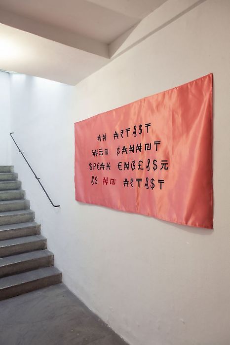 Ferenc Gróf, Who cannot (after Mladen Stilinović), 2015, flocking on textile, 150 x 75 cm, photo: Peter Paulhart