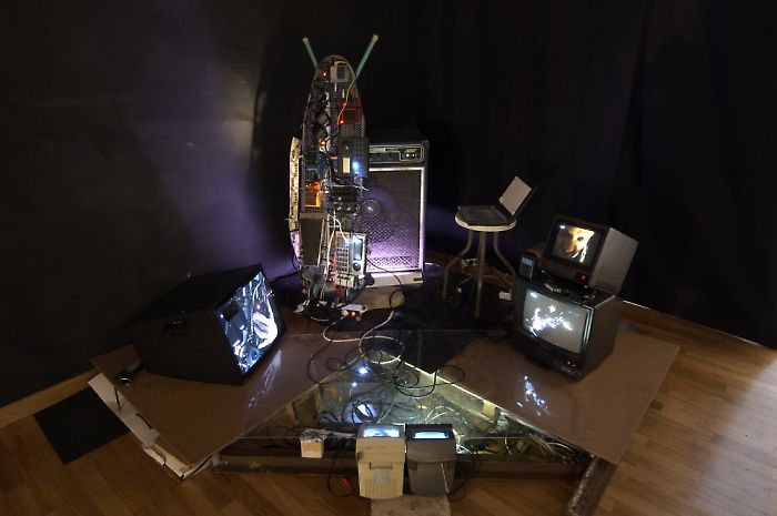 The exhibition FEEDBACKSTAGE represents an attempt to explore the abolition of the border between the closed and the incomplete. It seeks to be a refusal of the total determination of a real work, defined by temporal and spatial lines, and its sensually limited reception, and represents the desire to develop a discourse without precise limits.