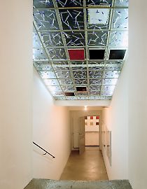While in his studio work, beginning in 1993–94, he concentrated first on paper works, and then on mid-sized canvas works, exploring the possibilities of the drawing and painting tool of ballpen ink in terms of composition, application, and structure, when invited to participate in exhibitions he hardly ever shows the works he works on in the studio. Instead he grants [...] a view of the conditions and processes at the root of his drawings and images. Squeezed out ballpen cartridges, cardboard boxes that at some point were filled with a dozen BIC pens; sponges from gas stations, drawn on records, empty ballpen casings with cap, or simply notes written with ballpen on the wall. […]