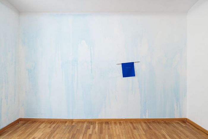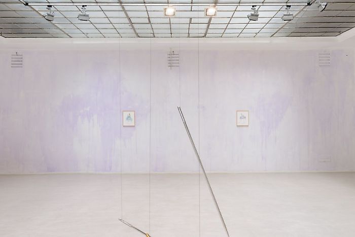 Katrina Daschner’s multimedia work, which encompasses film, performance, painting, sculptural objects, drawing and installation, as well as community practice, is performative at its core. It addresses and performs modes of being and non-being that arise from questions of queer (in)visibility, the liberation of the body from heteronormative codes, and the joyfulness found in acts of solidarity and resistance. While rooted in the self and the autobiographical, resistance for Daschner is always collective. The longing for perceptibility, the desire to deeply feel all aspects of our lives is visually manifested in the use of different (textile) materials through embroidery, sewing, crochet and knitting techniques, in bright, bold colours, shining and tactile surfaces and in a close dialogue with the space. Whether in her films or when working with exhibition formats, Daschner approaches the space as a stage, creating environments, inhabited with her lively, mutable characters. For this exhibition at Georg Kargl Fine Arts, Daschner decided to forego cinematic works in favour of sculptural and textile bodies of work (all works 2023–2024) in an environment of colourful, watery coloured wall-paintings, corresponding with her watercolour drawings. Walking through the spaces, one can notice the rainbow colours of the LGBTIQ+ community.