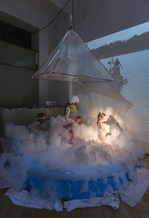 The exhibition is presented as a rhizomatic platform whose range covers a number of territorial oppositions: the expanded environment of the internet and the offline sphere; new technologies and the concerns of ancient humans; political awareness and escape; dystopia and utopia. The exhibition is intended as a complex entity, and brings these works together in aim of expanding thought on the limits of togetherness, connectivity and the potentials for adopting invented communities.