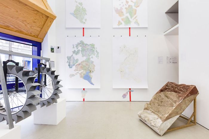 Peter Fend, VIEL MEHR INSEKTEN, VOEGEL U. WILDTIERE IM WASSER EURAFRIKA VERBINDET LOESUNGEN BAUEN AUF ARCHITEKT, Ausstellungsansicht, 2021, courtesy the artist and Georg Kargl Fine Arts, © Georg Kargl Fine Arts, Foto kunst-dokumentation.com
