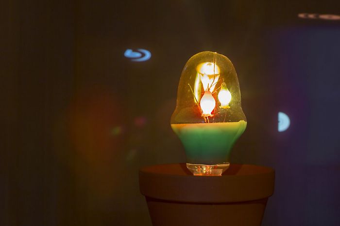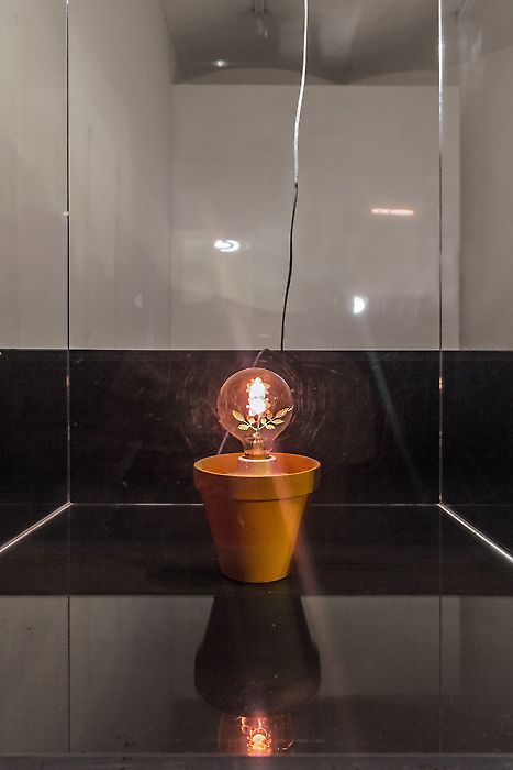 Excavating the obscure [2], rather kitschy early light sculptures of American minimalist Dan Flavin, neo-conceptual artist Lazar Lyutakov has produced a quasi-bootleg of those less known tabletop sculptures. Their obsolescent light bulb components are nearly identical to ones manufactured in Flavin’s era. After a period of archival research on the history of their production Lazar sourced and purchased the rare vintage light bulbs via the Internet. Inside of the clear glass is a perfectly crafted rose shaped filament emitting its incandescent light. As documented in the collection of MoMA, New York, the materials listed are: “Aerolux Flowerlite” light bulb, terracotta flowerpot, electric cord, and light switch. An artifact of its time, this novel item of amusement has long been out of production long before the standard incandescent bulb was recently phased out globally. The U.S. patent was filed on June 7th 1932, followed by a filing in Tokyo by another inventor on March 2nd 1936. Pursuing the same goal, each patent developed a different technology and design; one contains an incandescent light bulb with hand made glass objects inside with wires that heat up to provide light. The other utilizes a gas discharge to provide a similar mood effect. Formulating an idea for approaching the Flavin concept with difference, Lazar’s main objective was to create an alternative version. Much like a band that covers another bands song, stylistic distinctions are made in the content of the vessel. The vessel of contemporary art questions and determines what content actually is or isn’t when “user content” signify variations of the same mass appeal social construct. To use a fashion analogy, yesterdays dress “format” is the same as today, save for the switch to a “new” pantone color of the year. Critical mass jumps on the bandwagon; opinion as peer pressure is as easy as social media. Distinctions in content get watered-down, original ideas turn into “poor” iterations of sophisticated concepts and vice versa. Paradoxically there is richness in “poor”, well understood by the adage quantity not quality. Accountants can verify this statement!
