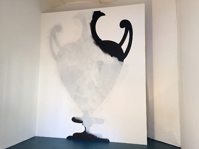Housed in the Georg Kargl project space ‘Permanent’ as though in a glass-fronted cabinet, the 4 m high silhouette – a ‘painted’ classical urn – heightens, both literally and figuratively, the meanings of Keats’ literary one and its archaic predecessor, even as it takes liberties with these forbears. The result – one might call it ‘ekphrasis reloaded’ – relies on the viewer’s memory of Keats’ poem, just as Keats’ poem requires the reader’s memory of ancient art.