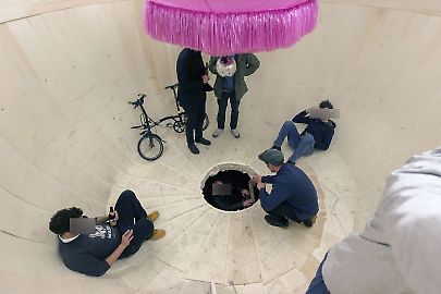 Bildstein | Glatz, known for their spectacular large-scale sculptures reminiscent of extreme sports architecture and amusement parks, constructs a space-filling Microdrome in the exhibition space Georg Kargl Permanent at Schleifmühlgasse 17 in Vienna. Only the most daring ones will be invited to take the ride and conquer the installation with their companions. High tension/ voltage is guaranteed at this unique event. The exceptionally compact sized setting places the highest demands on the driver and the material.